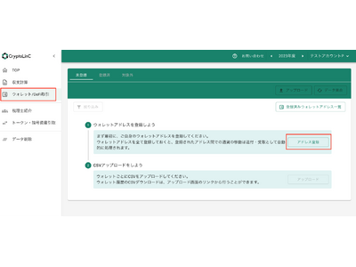 ウォレット/DeFi取引のメニューから「アドレス登録」をクリックします。