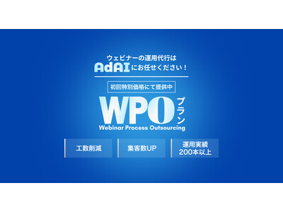 AI事業を展開する株式会社AdAI(本社:東京都渋谷区、代表取締役:江藤久昌)は、ウェビナー開催の企画・集客・準備・開催・データ活用までを一気通貫で代行依頼できるWPO(Webinar Process Outsourcing)サービスの提供を開始いたします。