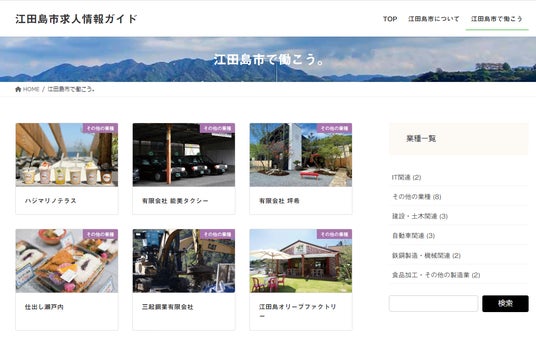 - 特 徴 江田島市内に拠点を置く20事業者の求人情報を掲載。求人情報だけではな