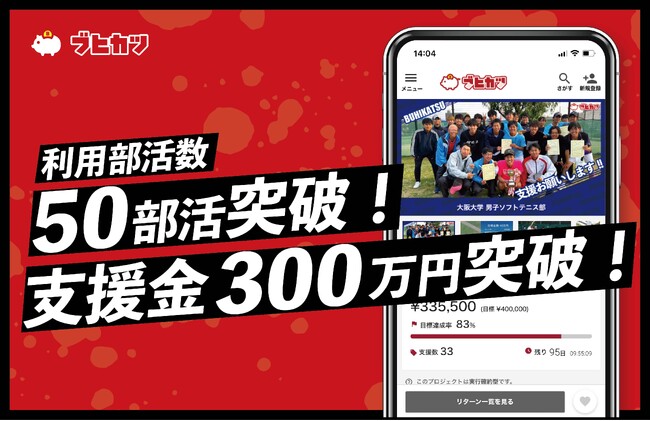 株式会社部活メディア(本社:東京都千代田区)が運営する、大学部活支援サイト「ブヒカツ」は累計支援総額が300万円を突破!また利用部活数が50部活を突破しました!