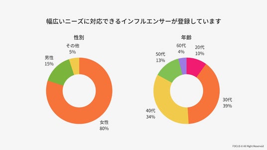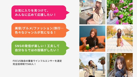 FOCUS株式会社では「日本一インフルエンサーを大切にする会社」を掲げ、現在7000人のインフルエンサーに登録していただいております。登録インフルエンサーの総フォロワー数は4500万人を突破しました。