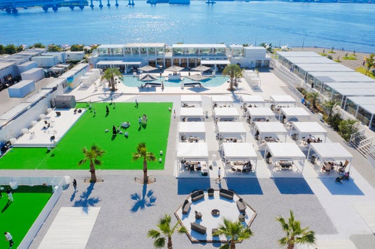 インスタ映えするリゾート感溢れる会場ロケーションステージ上での出展企業様紹介-
