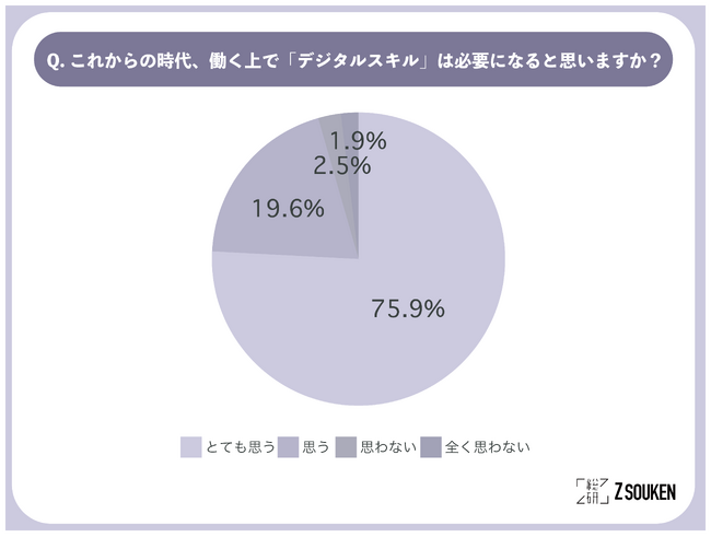 【Z世代の95%以上がこれからの時代働く上で、デジタルスキルは必要と回答】