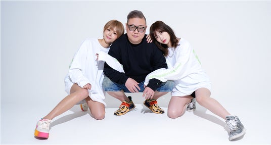 ミートたけし(川村竜)とアパレルアンバサダーを務めていただいた、倉持由香さん(右)となつきちさん(左)