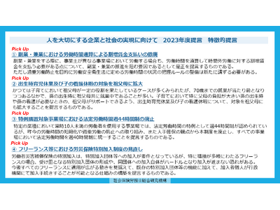全国社会保険労務士会連合会(会長:大野 実)は、2024年3月6日、労働・社会保障制度及び人事労務の専門家である社労士の視点に基づく提言として、2023年度政策提言・宣言「人を大切にする企業と社会の実現に向けて」を公表した。