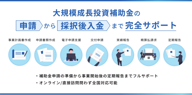 「大規模成長投資補助金申請サポート」の提供開始に伴い、当社では大規模成長投資補助金の申請を検討している中堅・中小企業向けに補助金の制度や申請の可否についてコンサルタントによる無料相談の提供を開始させていただきます。