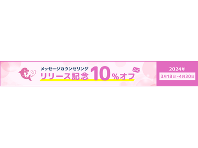 メッセージ機能のリリース記念といたしまして、2024年3月18日~2024年4月30日の期間中、カウンセリング料金を一律10%オフでご提供いたします。
