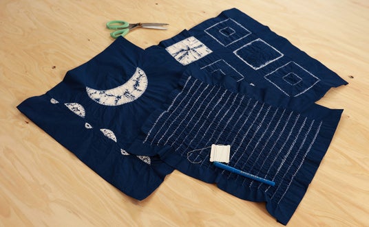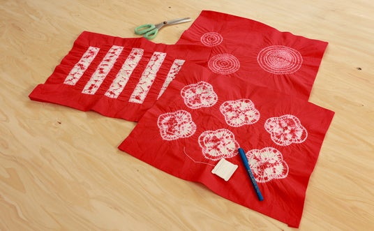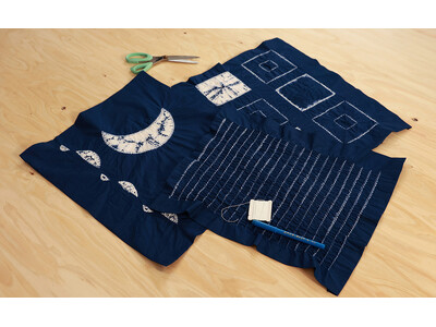 「縫い絞りランチョンマットキット」は、絞りやすい専用の糸と図案が9種付属し、文様を考案する手間がかからず、4種の絞り方、染色方法などイラストを用いた丁寧な説明書により、初めての方でもスムーズに作業を進めることができます。並縫いで面を表現したり、円状に縫って巻き上げ絞りで円を作ったり、糸を使った絞り染めの醍醐味を手軽に楽しむことが出来ます。