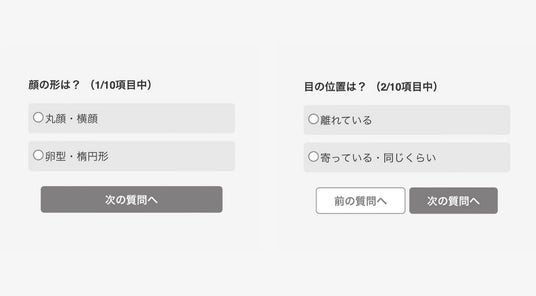 https://www.waverry.jp/diagnosis) にアクセスします。 その後、画面の案内に従って「顔のパーツの特徴」といった全11個の質問に回答をします。