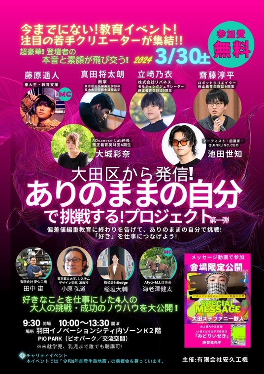 【大田区から発信!ありのままの自分で挑戦するプロジェクト~第1弾~】3/30(土)10:00~@PiOPARK(羽田HICity ZONE K)※事前申込制/参加費無料