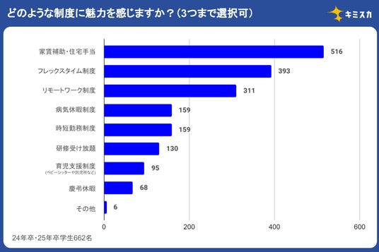 また、フレックスタイム制度やリモートワーク制度については、大学時代をコロナ禍で過ごした世代だからこそ高い割合をしめたと考えることができる。