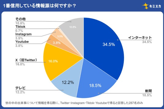 その結果、X(旧Twitter)は16.0%に留まり、インターネット(34.5%)や新聞(18.5%)が台頭していた。
