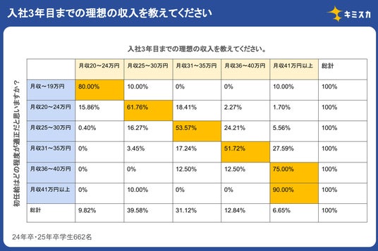 また、初任給だけでなく「入社3年目までの理想の収入」も調査した。