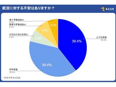 25年卒学生325名のうち、就活に対する不安はありますか?という問いに対して「とても不安・やや不安」と回答した学生は78.8%にのぼった。