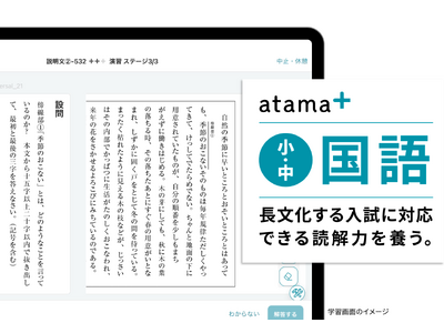 atama plus株式会社(本社:東京都港区、代表取締役CEO:稲田 大輔、以下atama plus)は、2024年3月20日よりAI教材「atama+(アタマプラス)」にて小中学生向け「国語」の提供を開始します。これにより、atama+は小学生の主要3教科に、中学生の主要5教科に対応できるようになります。