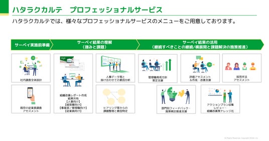 「働く人のライフスタイルを豊かにする」をミッションに、望まない離職を生まない組織づくりを支援する株式会社OKAN(代表取締役:沢木恵太、本社:東京都豊島区、以下OKAN)は、意識調査・組織課題改善サービス「ハタラクカルテ」において、サーベイ実施後の組織改善施策推進まで伴走するプロフェッショナルサービスβ版の提供を開始いたしました。
