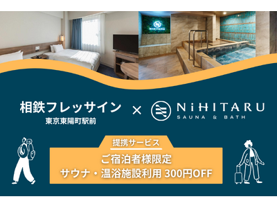 「合同会社NiHITARU(本社:東京都江東区、代表社員:水上 瞳)は、相鉄フレッサイン 東京東陽町駅前(運営:株式会社相鉄ホテルマネジメント)との提携サービスとして、「相鉄フレッサイン 東京東陽町駅前」の宿泊者限定・サウナ利用割引サービスを開始します。