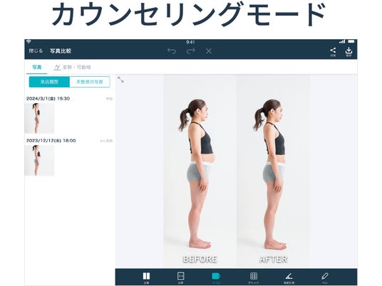 写真比較や角度計測、ペン機能でお客様と一緒に効果を実感できます