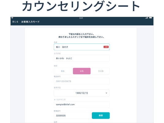 初回問診をアプリで行い、お客様情報として管理できます