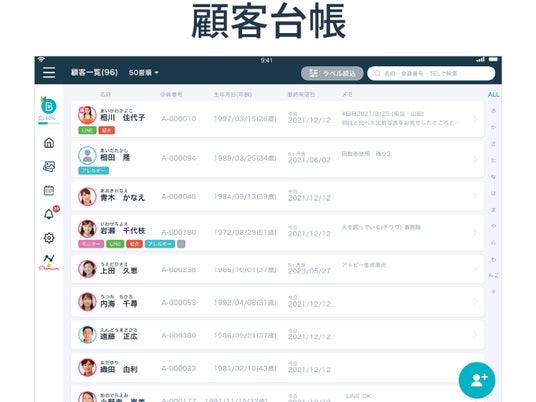 お客様の基本情報や来店履歴が一覧で確認できます