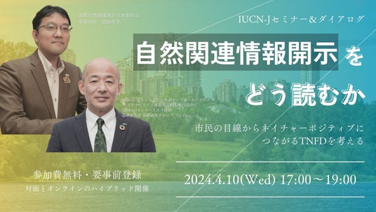 コメントの3名に加え、特別ゲスト 原口真氏(MS&ADインシュアランスグループホールディングス サステナビリティ推進部 TNFD専任SVP/MS&ADインターリスク総研 基礎研究部 基礎研究グループ フェロー)を招いて、ネイチャーポジティブにつなげるこれからのTNFD開示と企業-NGOの関係について、話し合います