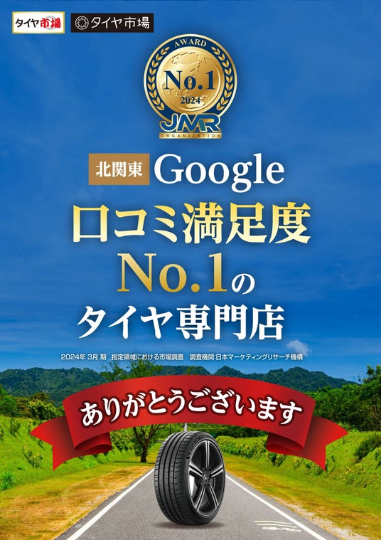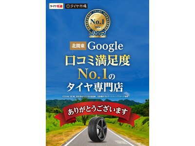 北関東・千葉・東京・東海エリアに35店舗を展開するタイヤ専門店 タイヤ市場「2024年 北関東 Google 口コミ満足度 No.1のタイヤ専門店」に認定されました。