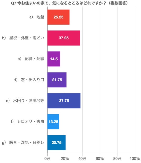 また現在居住中の住宅で気になる点のアンケートによると、ランキング順にすると