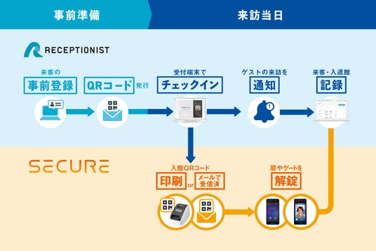 株式会社RECEPTIONIST(本社:東京都目黒区、代表:橋本 真里子 以下「RECEPTIONIST」)と、株式会社セキュア(本社:東京都新宿区 代表取締役社長:谷口 辰成、以下「セキュア」)は、クラウド受付システム「RECEPTIONIST」とセキュアが提供する入退室管理システムとの連携を開始したことをお知らせします。本連携を通じて、効率化とセキュリティが両立した来客・入退室管理を可能にします。