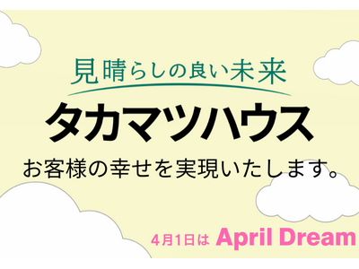 当社は、4月1日を夢を発信する日にしようとするApril Dreamに賛同しています。このプレスリリースはタカマツハウス株式会社の夢です。タカマツハウスは「見晴らしの良い未来」を提供し、お客様の幸せを実現いたします。