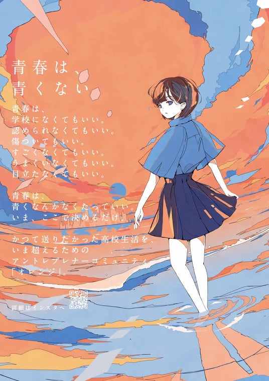 「オレンジ」は、無花果グループ、岡山大学、NPO法人だっぴが共同設立した高校生向けの起業家コミュニティです。アントレプレナーシップ(起業家精神)醸成の出口として、起業と総合型選抜入試の受験を支援します。無花果高等学園にコミュニティスペースを開設し、毎週木曜日の17時から21時まで開放し、活動を行なっています。