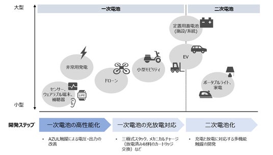図5. 金属空気電池のアプリケーションへの展開と開発ステップ