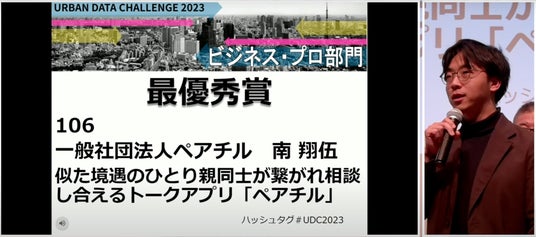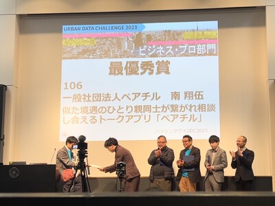 一般社団法人ペアチル(本社:東京都港区、代表理事:南翔伍)は、「ひとり親限定のトークアプリ ペアチル」が「アーバンデータチャレンジ2023 with 土木学会インフラデータチャレンジ2023」ビジネス・プロフェッショナル部門において、最優秀賞を受賞したことをお知らせいたします。