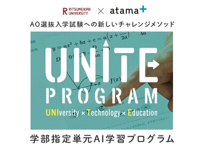 atama plus株式会社(東京都港区、代表取締役CEO 稲田 大輔)は、立命館大学(京都府京都市、学長 仲谷 善雄)と協働で開発した「学部指定単元AI学習プログラム(通称:UNITE Program、以下プログラム)」の修了を出願要件に取り入れた2025年度総合型選抜(AO選抜入学試験)を、立命館大学にて昨年度より対象を拡大し8学部5教科で実施することをお知らせします。プログラムの出願開始は5月8日、AO選抜の出願開始は9月以降となります。