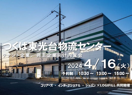 求荷求車マッチングサービスを営む株式会社LOGIFILL(本社:神奈川県茅ヶ崎市)は、コリアーズ・インターナショナル・ジャパン株式会社と共同で、2024年4月16日(火曜日)に茨城県つくば市の「つくば東光台物流センター」で内覧会を開催します。