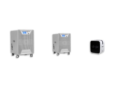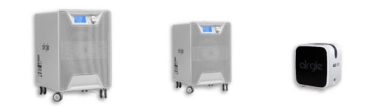 アメリカ食品医薬品局(FDA)認証classII認証を取得したairgle(R)空気清浄機3機種(左からAG900、AG600、AG300)