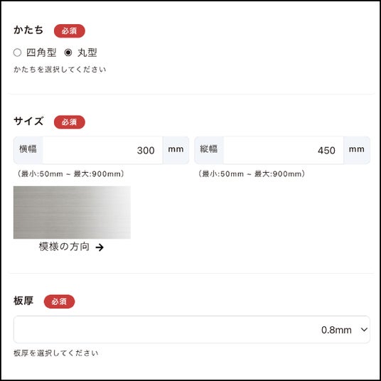素材販売サービスでは、画面上でユーザーが気軽に寸法などを入力するだけで注文が可能です。