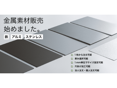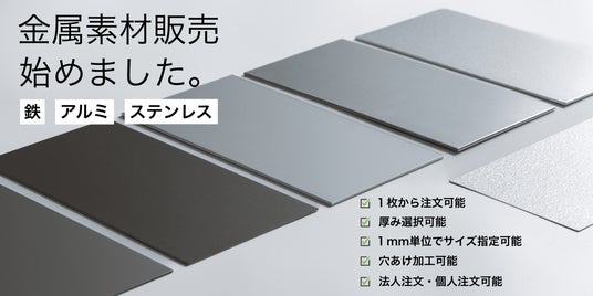 鉄、ステンレス、アルミニウムなど10種類以上の金属素材を、サイズや形を指定し1点からオーダー注文が可能です。