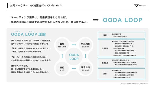 Webマーケティングの戦略コンサルティングを手掛けるPROJECT GROUPでは、全案件でこの「OODAループ」を採用しており、