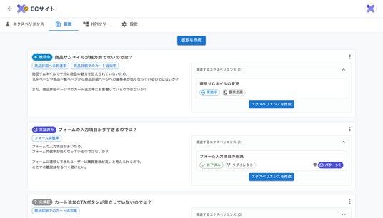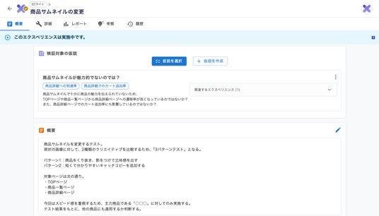 仮説に紐付けてABテストを作成。便利なメモ機能も。