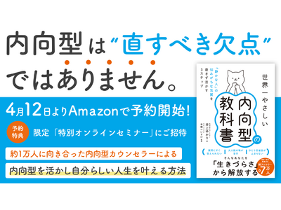 これまで約1万人の内向型の方と関わってきた内向型カウンセラーである井上ゆかりの著書『世界一やさしい内向型の教科書「静かな人」の悩みがちな気質を直さず活かす方法』が、株式会社世界文化社(本社所在地:東京都千代田区 代表取締役社長:鈴木美奈子)より予約販売を開始しました。本書は2024年5月26日(日)に刊行します。