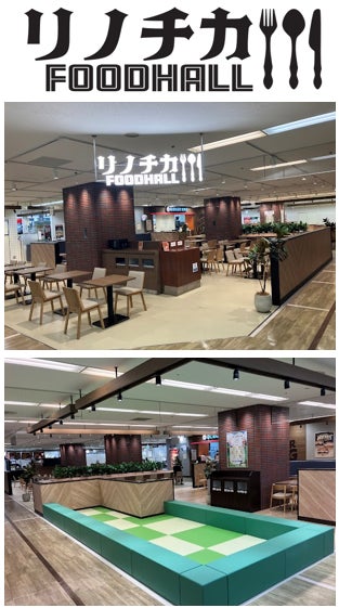 リノチカFOODHALL(フードホール)2月16日(金)オープン約80席と以前より増席。さらに、ソファ席やお食事の合間に小さなお子さまが遊ぶことのできる「ベビースペース」を新たに設け、お食事やお買物途中の休憩にくつろいでご利用いただけるよう、ゆとりのあるスペースにリニューアルしました。