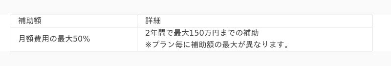 *月額費用を2年間で合計150万円までの補助となります。詳細はお打ち合わせ時に説明いたします。