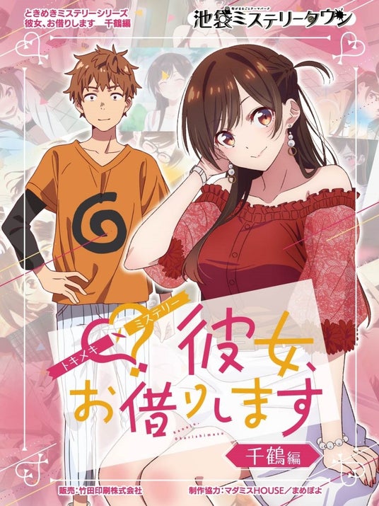 池袋ミステリータウンは、2024年6月にTVアニメ『彼女、お借りします』とのコラボグッズを販売開始します。プレイヤーが登場人物になりきり、それぞれの目標を目指す『マーダーミステリー』は、昨今 多様なジャンルが生まれてきています。その中でもプレイヤー自身が『彼女、お借りします』の登場人物になりきって物語をつむぐ本作は、マーダーミステリーの新ジャンル「ときめきミステリー」として展開してまいります。4月27日(土)、28日(日)のアナログゲームイベント『ゲームマーケット』では本作の先行販売を、5月4日(土)、5日(日)にはWACCA池袋にて先行販売および無料にて先行体験できる特別イベントを開催予定です。