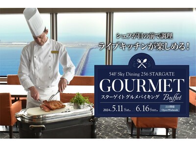 関西国際空港の対岸にある地上256mの超高層ランドマークタワー、スターゲイトホテル関西エアポート(所在地:大阪府泉佐野市りんくう往来北1番地)は、54階 スカイダイニング256「スターゲイト」にて、2024年5月11日(土)~6月16日(日)までの土曜・日曜限定でライブキッチンが楽しめる「スターゲイトグルメバイキング」を開催いたします。