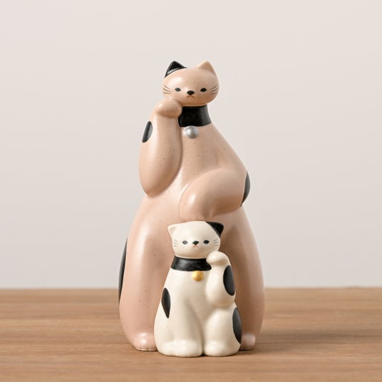 その第一弾として、中外陶園が得意とする招き猫の制作からスタートします。 親子で幸運を招く猫、謙虚に幸運を招き入れる猫、従来の招き猫とは少し違ったイメージで作りました。 そして今回の展覧会に合わせて、8枚の猫の原画を描きおろしました。 猫に特化した展示は初めての試みですが、楽しんでいただけましたら幸いです。