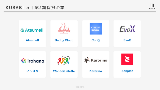 KUSABI(東京都中央区)は、創業前もしくは創業間もないスタートアップ企業を対象とするアクセラレーションプログラム「KUSABI α」( https://kusabi.fund/accelerator/)において、第2期(Summer&Winter Batch)の採択企業が決定しました。すでにKUSABI αでのアクセレーションプログラムを始動しております。