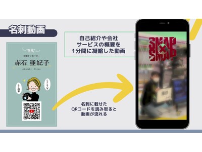 名刺にQRコードを添えることで、スマートフォンで瞬時に動画を視聴することができるので、顔と名前を憶えてもらいやすくなります。