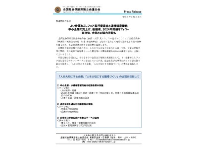 全国社会保険労務士会連合会(会長:大野 実)は、よい仕事おこしフェア実行委員会(事務局:城南信用金庫 川本 恭治理事長)と相互に協力して地域の活性化と産業の振興を図るため、包括的連携に関する協定書を締結します。
