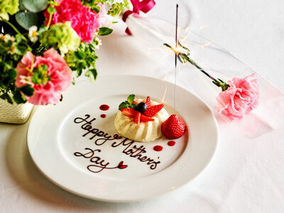 さらに、母の日にあわせて2024年5月11日(土)、12日(日)の2日間限定で、人気デザートメニューのパンナコッタのオリジナルメッセージプレートが登場します。お食事の最後に、感謝のメッセージを記したデザートプレートとカーネーション一輪をお母様にご用意し、思い出に残るシーンを演出します。