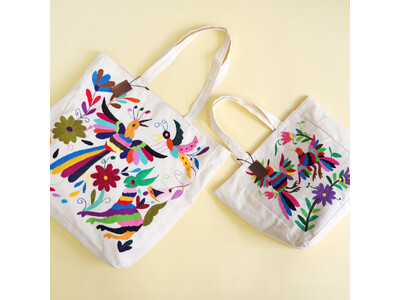 WOVENはメキシコでオトミ刺繍を受け継ぐ限られた職人さんと取り組み、オトミ刺繍の代表的なデザインながら一番難しいとされる、白い生地に複数の刺繍糸を施したデザインのバッグや使いやすい単色使いのバッグを展開します。